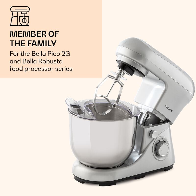 Robustní náhradní míchací metla z tlakově litého hliníku ke kuchyňským robotům Klarstein Bella Pico 2G a Bella Robusta. Velmi vhodná také jako doplňková míchací metla, chceš-li připravovat různá jídla, aniž bys mezitím musel nástavec čistit.