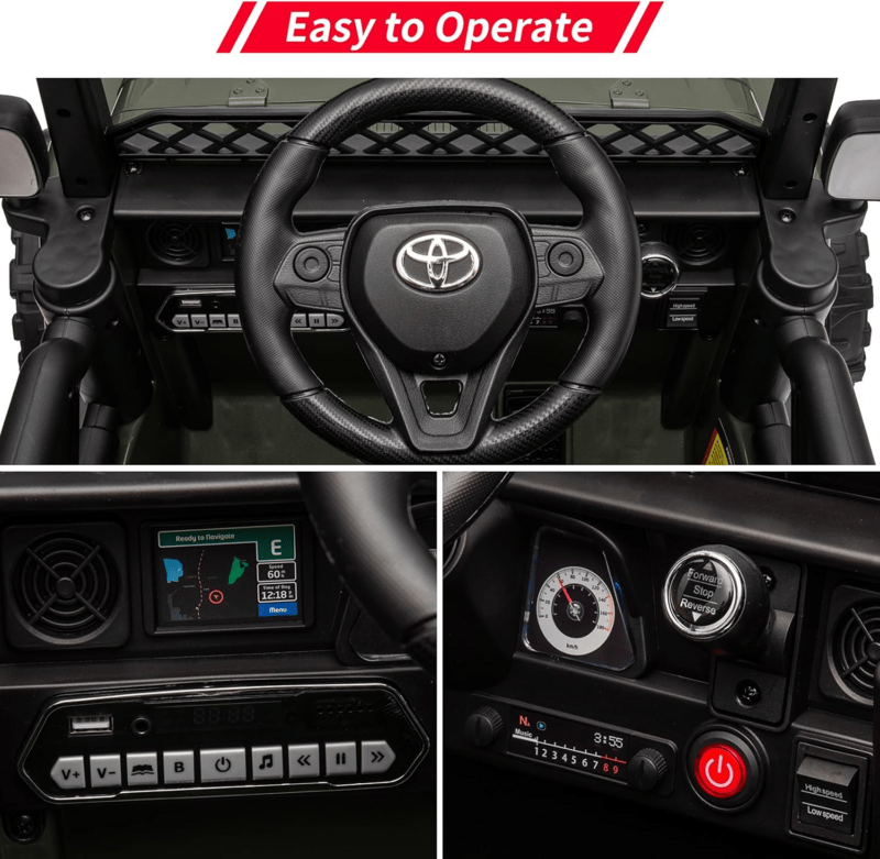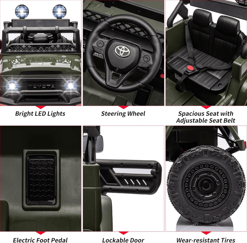 Elektrické autíčko JiaJia Cars 154 Toyota Army Green JJ2099 pro děti je zmenšeným modelem originálu. S možností ovládání dospělými pomocí dálkového ovladače.