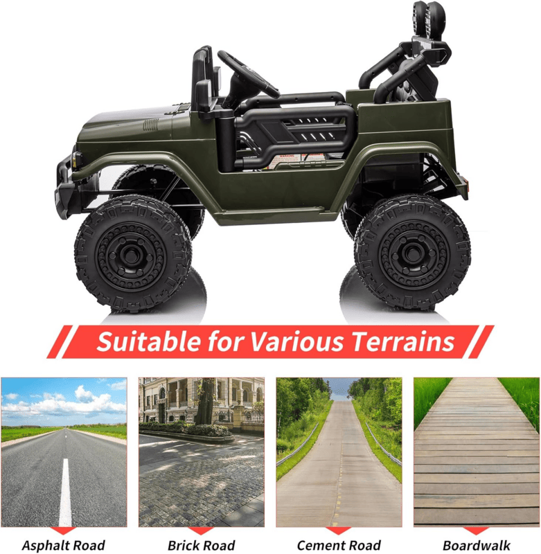 Je vybaveno 4 motory o celkovém výkonu 140W a společně s pěnovými EVA koly zvládne různé typy povrchů. Dítě se posadí do pohodlně tvarované sedačky z měkké ekologické kůže.