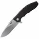 Krátká částečně zoubkovaná čepel je vyrobena z kvalitní nástrojové oceli D2 s černou povrchovou úpravou, otevírá se palcem pomocí výstupků na čepeli. V otevřené pozici ji drží pojistka Frame lock.