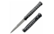 S oboustranně broušenou čepelí s hladkou hranou z oceli s černým povrchem, otevírá se pomocí předního vyskakování OTF (Out the Front), zajišťuje ji posuvný mechanismus Slide Lock.