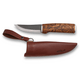 Má pevnou čepel s hladkou hranou z uhlíkové oceli, která vydrží déle ostrá, se skandinávským výbrusem.