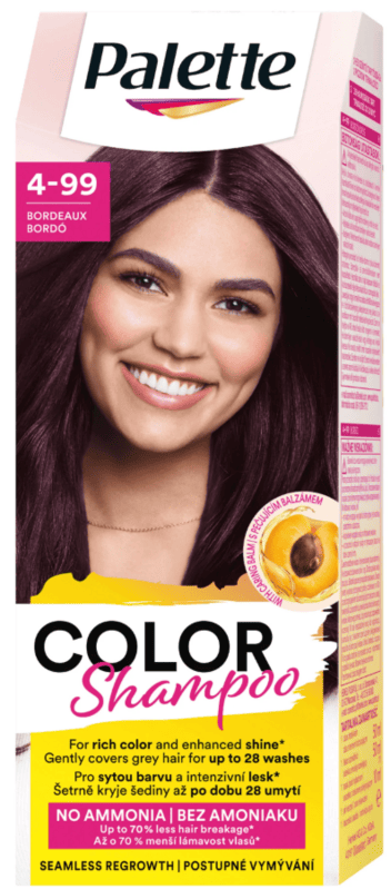 Barvící šampon na vlasy Palette Color Shampoo 4-99 Bordó 50 ml dodává vlasům intenzivní bordó odstín pro výraznou a elegantní barvu s přirozeně vypadajícím leskem.
