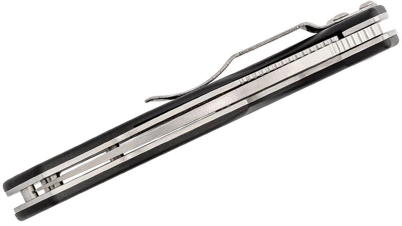 S čepelí s částečně zoubkovanou hranou z nerezavějící oceli 8Cr13MoV se saténovou povrchovou úpravou, otevírá se otvorem v čepeli a zajišťuje ji zámek Linerlock.