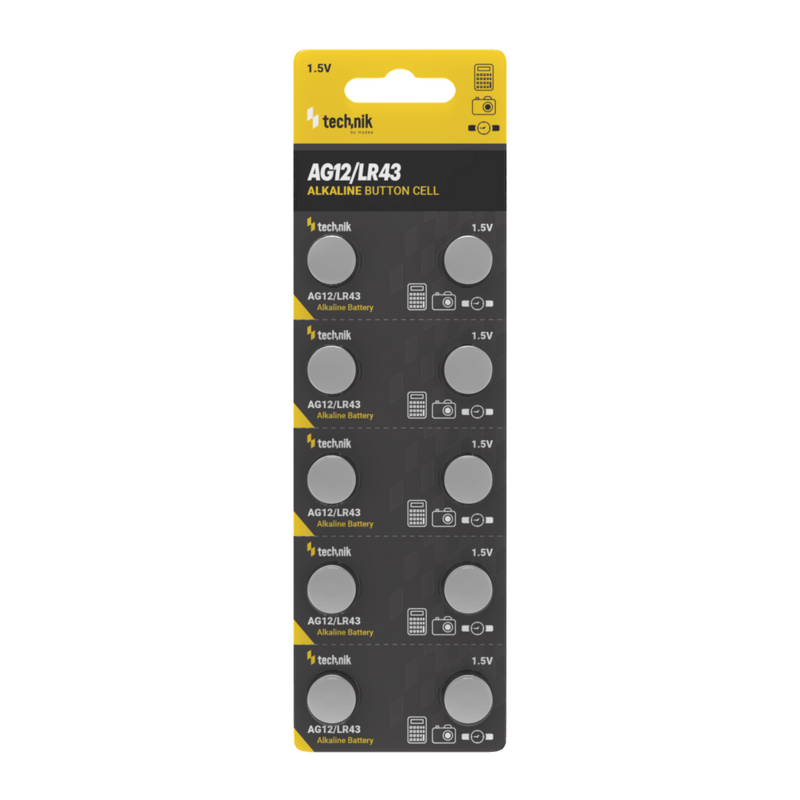 Alkalická knoflíková baterie Technik Platinum AG12 1,5V B10 se jmenovitým napětím 1,5V a kapacitou 85 mAh . Je šetrná k životnímu prostředí, protože neobsahuje rtuť ani kadmium.