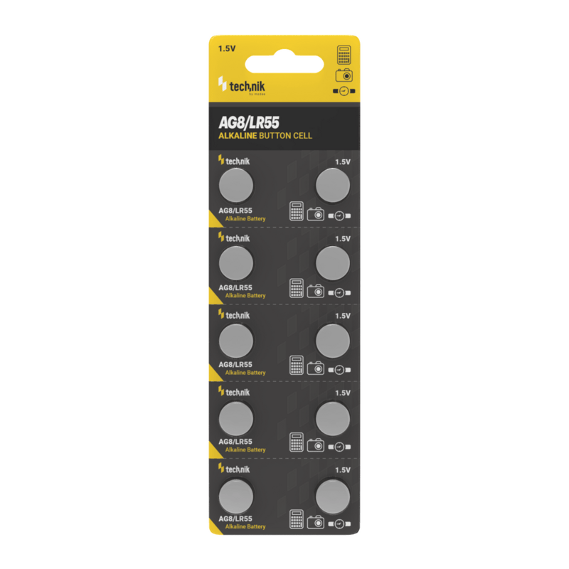 Alkalická knoflíková baterie Technik Platinum AG8 1,5V B10 se jmenovitým napětím 1,5V a kapacitou 32 mAh . Je šetrná k životnímu prostředí, protože neobsahuje rtuť ani kadmium.
