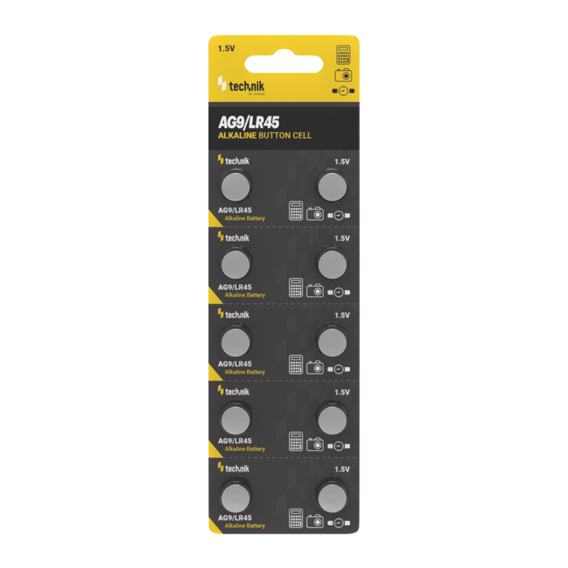 Alkalická knoflíková baterie Technik Platinum AG9 1,5V B10 se jmenovitým napětím 1,5V a kapacitou 55 mAh . Je šetrná k životnímu prostředí, protože neobsahuje rtuť ani kadmium.